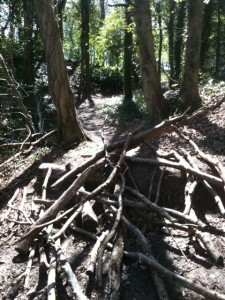 Who tried to block the runs did go through my head – kids, walkers (with or without dog), horse riders – but in reality that’s kind of irrelevant. The point is that, whether for some childish prank or because someone believes that mountain bikers do not belong on the trails, someone is thinking they’re spoiling our fun. I won’t deny that I can understand how the Trail Wrecking Society have grabbed the wrong end of the wrong stick – sure the mountain suffers with litter & the offending trash has historically been found in the same areas as the lovingly built trails, but the TWS are putting two & two together & making 100.