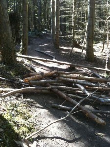 There are many questions in my head & I guess I’ll never get around to answering them all, but the prominent one for today is about people’s appetite for destruction – in particular why, oh why would anyone want to try & block the downhill trails on our local mountain.